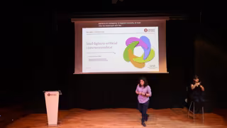 La investigadora Lídia Arroyo durante su conferencia sobre la aplicación de la IA en las políticas locales organizada por la Diputación de Barcelona. - DIPUTACIÓN DE BARCELONA
