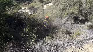Treballs forestals de trituració de les restes vegetals afectades per lescolítid Tomicus destruens al Parc de la Serralada de Marina. - XPN / DIPUTACIÓ DE BARCELONA