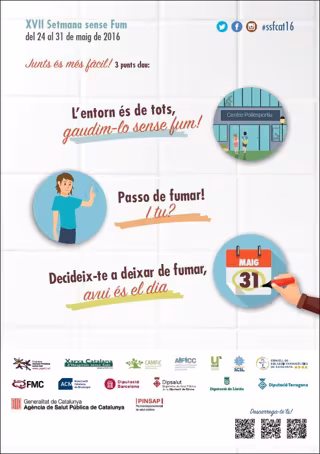 Con el objetivo de involucrar a todos los ámbitos con una iniciativa común, diferentes entidades como el Consell de Col·legis de Farmacèutics, la Xarxa Catalana d'Hospitals Sense Fum y la Associació Catalana de Municipis (ACM) participan en la iniciativa que empieza este martes y hasta el siguiente.