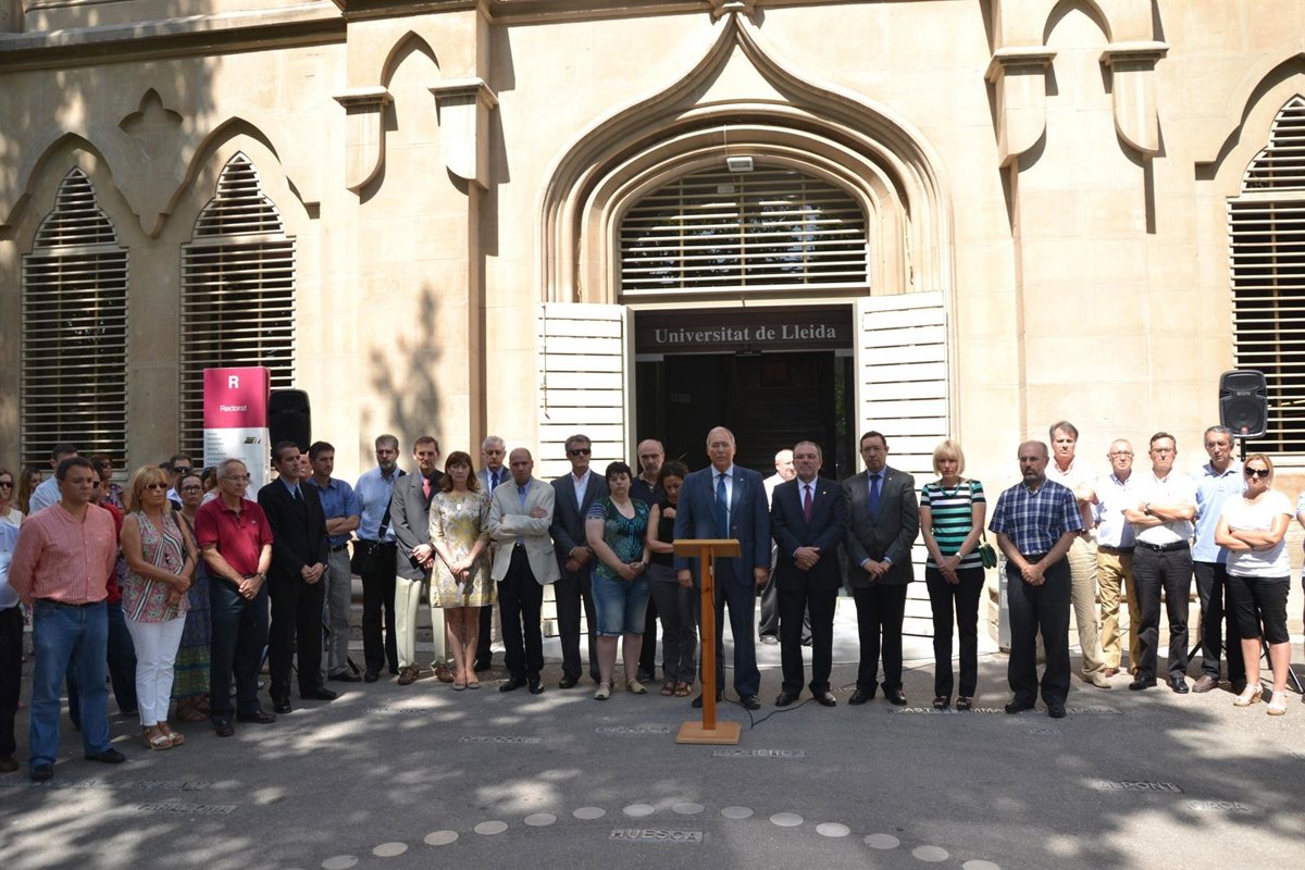 El presidente de la Diputación de Lleida, Joan Reñé, se ha sumado este viernes al minuto de silencio convocado por la Facultad de Medicina y el Consell de l'Estudiantat de la Universitat de Lleida (UdL) para expresar el dolor por las muertes de los viajeros y en especial por los dos estudiantes del centro fallecidos.