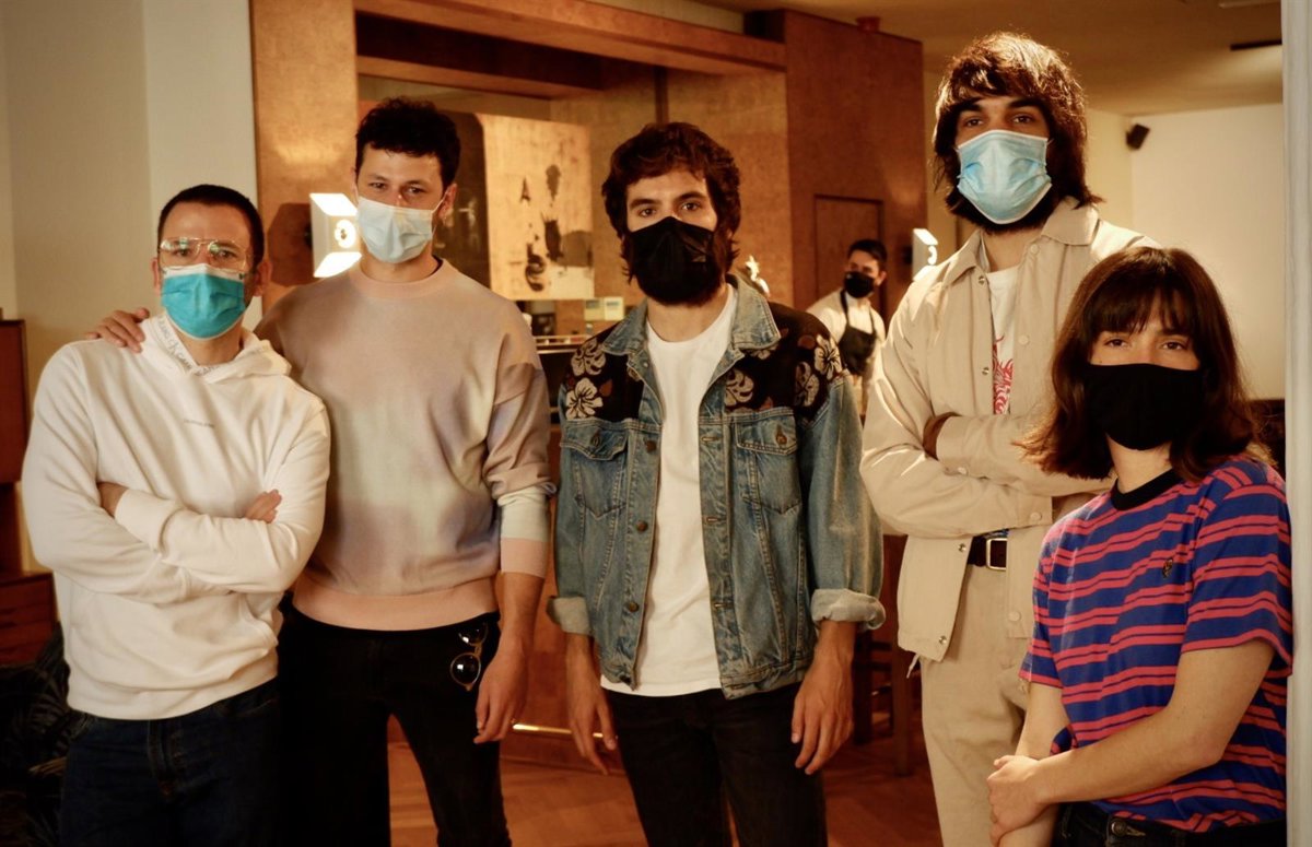 El director y guionista de 'Mía y Moi', Borja de la Vega, junto a los actores Joe Manjón, Ricardo Gómez, Eneko Sagardoy y Bruna Cusí en el Hotel Regina de Barcelona - EUROPA PRESS