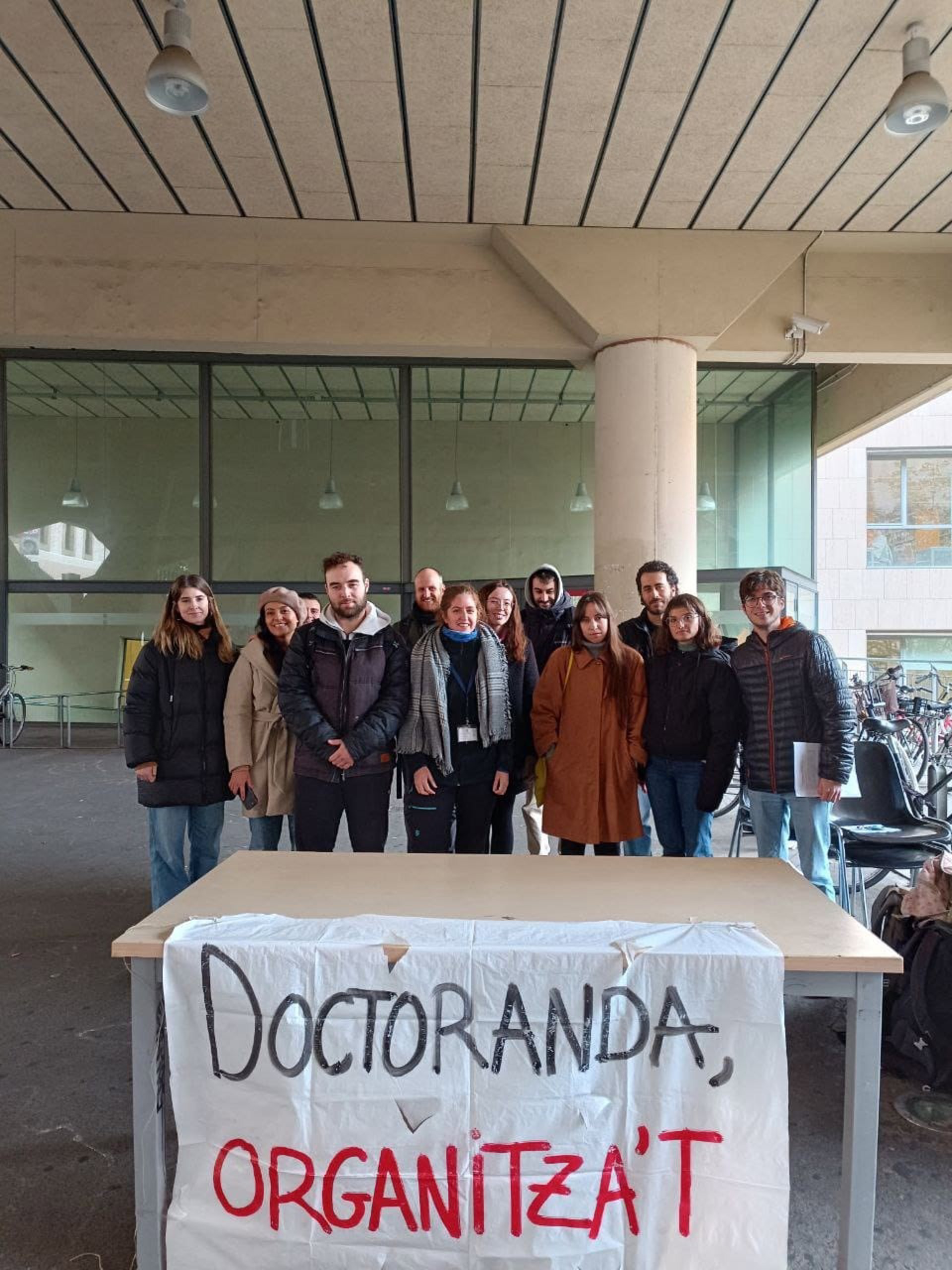 En rueda de prensa este miércoles, representantes del colectivo, con el apoyo de CC.OO., CGT, UGT, y Front d'Estudiants, han presentado una campaña reivindicativa para pedir también más medios para realizar su trabajo, la revisión del Estatuto de doctorandos, y una actualización del salario "que lleva años sin revisarse".
