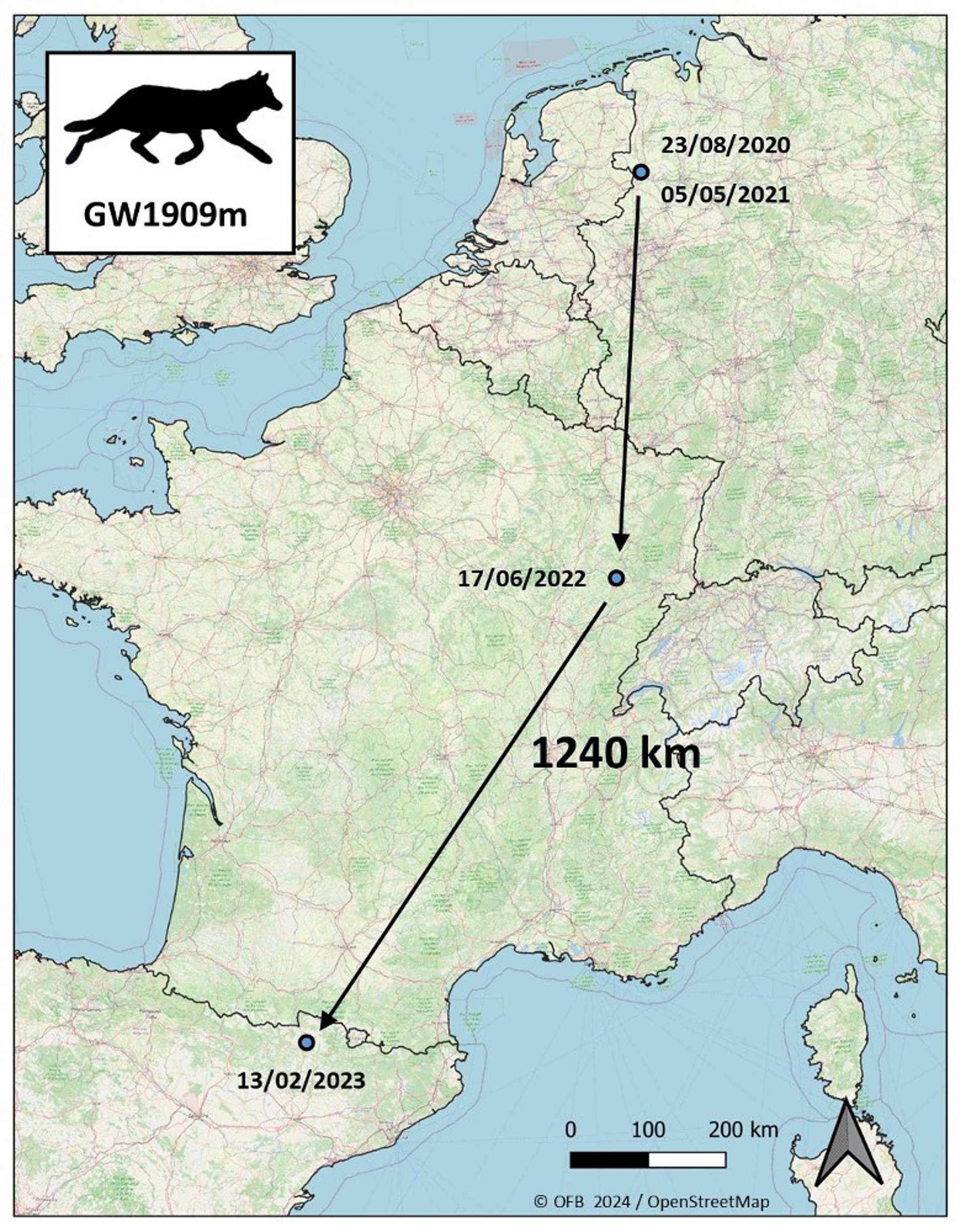 Consistía en el ejemplar llamado GW1909m por los científicos, que ya había sido localizado el 17 de junio de 2022 en la zona de Haute Saone (Francia) y anteriormente en Alemania, y desde febrero de 2023 no se ha vuelto a detectar "ninguna evidencia" de la presencia de este lobo en la comarca.