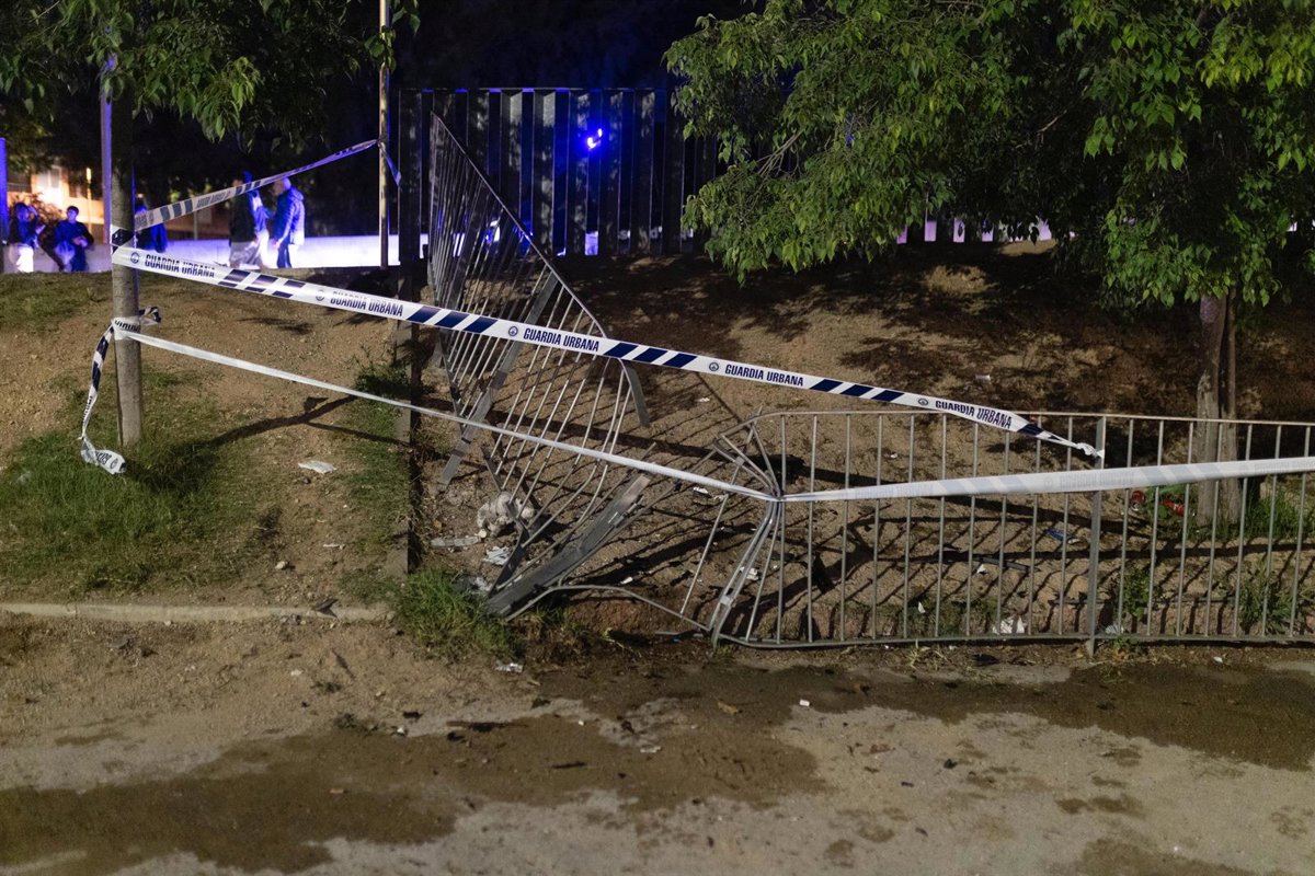 Una valla caída en el lugar de los hechos, a 15 de mayo de 2025, en Cornellà de Llobregat, Barcelona, Catalunya (España). - Xavi Hurtado / Europa Press
