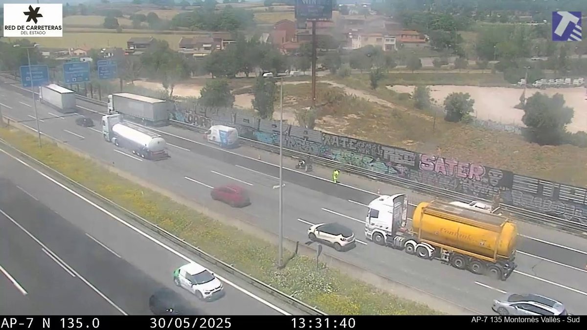 Los dos carriles cortados en la AP-7 en Montmeló (Barcelona) por un accidente - SERVEI CATALÀ DE TRÀNSIT (SCT)