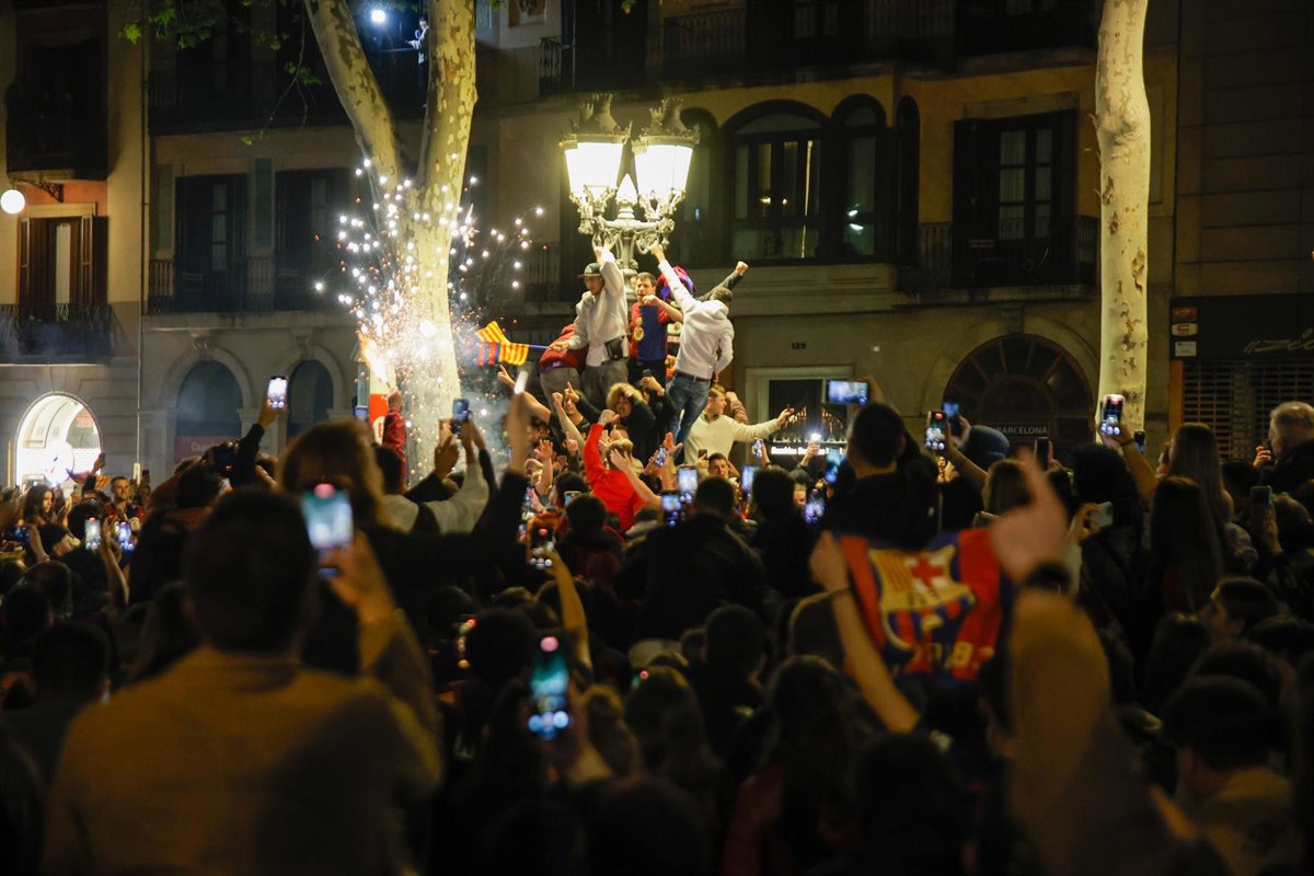 Los Mossos d'Esquadra detuvieron este domingo a dos personas sobre las 4.30 en la Rambla de Canaletes de Barcelona por el lanzamiento de botellas contra la Guardia Urbana durante la celebración del triunfo del FC Barcelona en la Copa del Rey, ha informado la policía catalana a Europa Press.