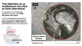 Localización del entorno minero de Súria, en la provincia de Barcelona, donde han fallecido tres trabajadores tras un accidente en una mina el 9 de marzo de 2023. - Europa Press