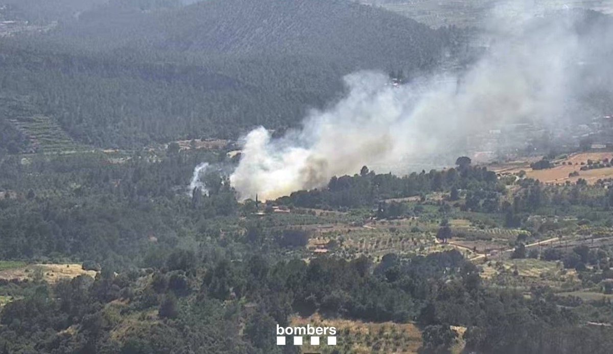 El incendio está cerca de una masía y los bomberos están utilizando el helicóptero bombardero desde el flanco izquierdo para que no se abra hacia la masa forestal.
