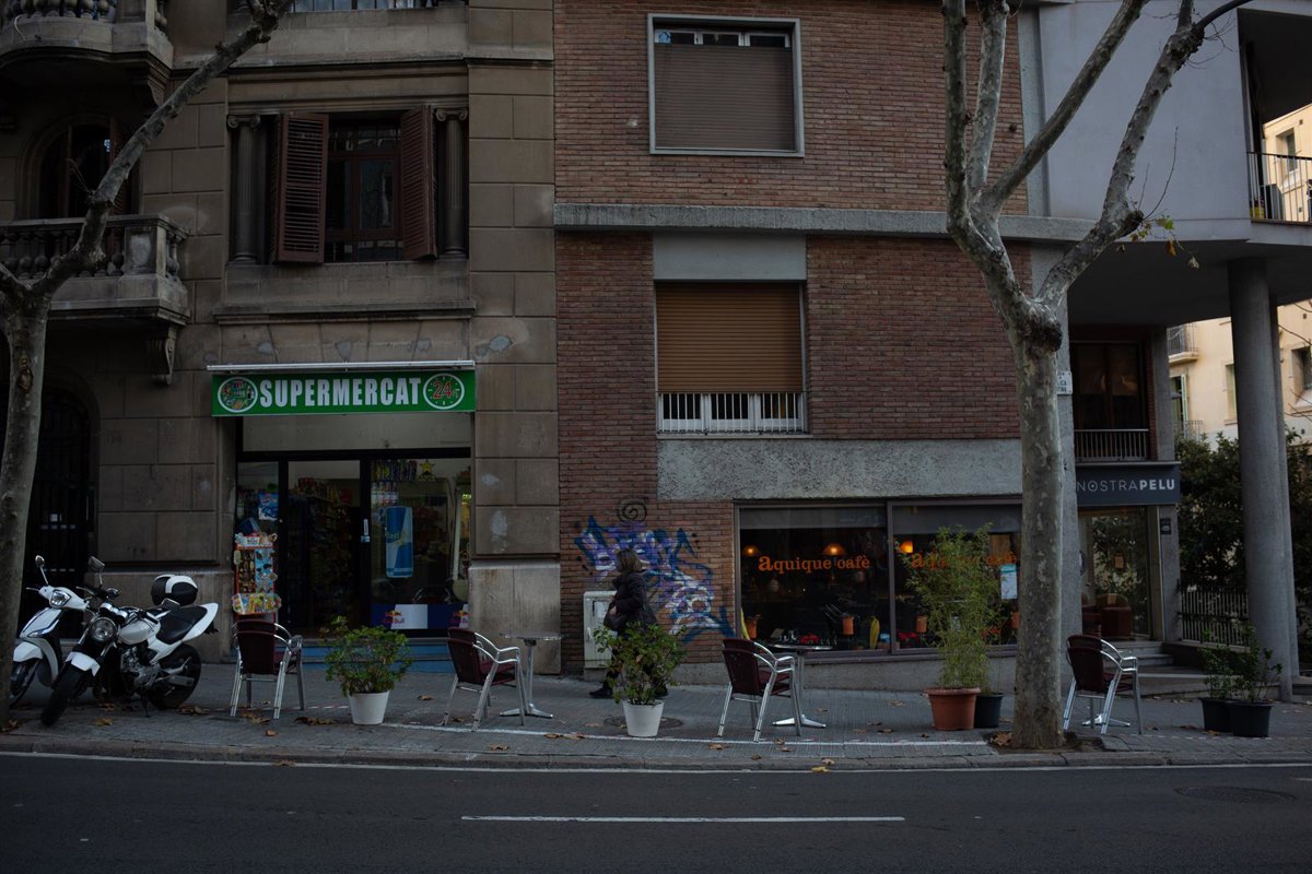 Sillas vacías en una terraza de una céntrica calle de Barcelona. - David Zorrakino - Europa Press - Archivo