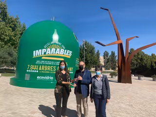 La gerente de Ecovidrio en Catalunya, Silvia Mayo ; el concejal del Ayuntamiento de Lleida, Jaume Rotllant; y la coordinadora de sostenibilidad, Esther Fanlo. - EUROPA PRESS