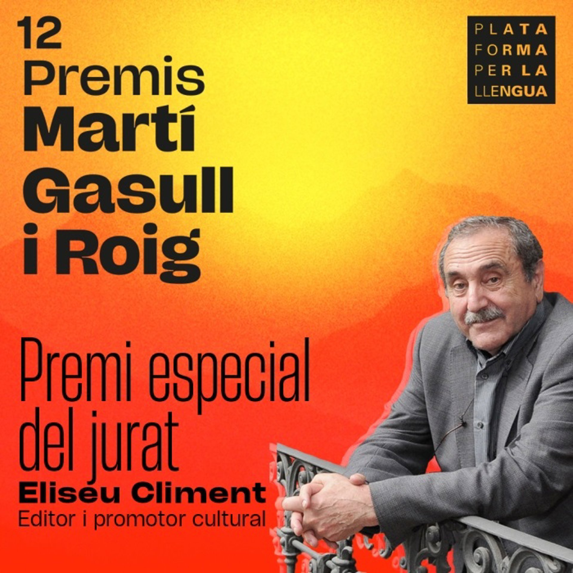 Eliseu Climent, Premio Especial del Jurado en los 12 Premios Martí Gasull i Roig. - PLATAFORMA PER LA LLENGUA
