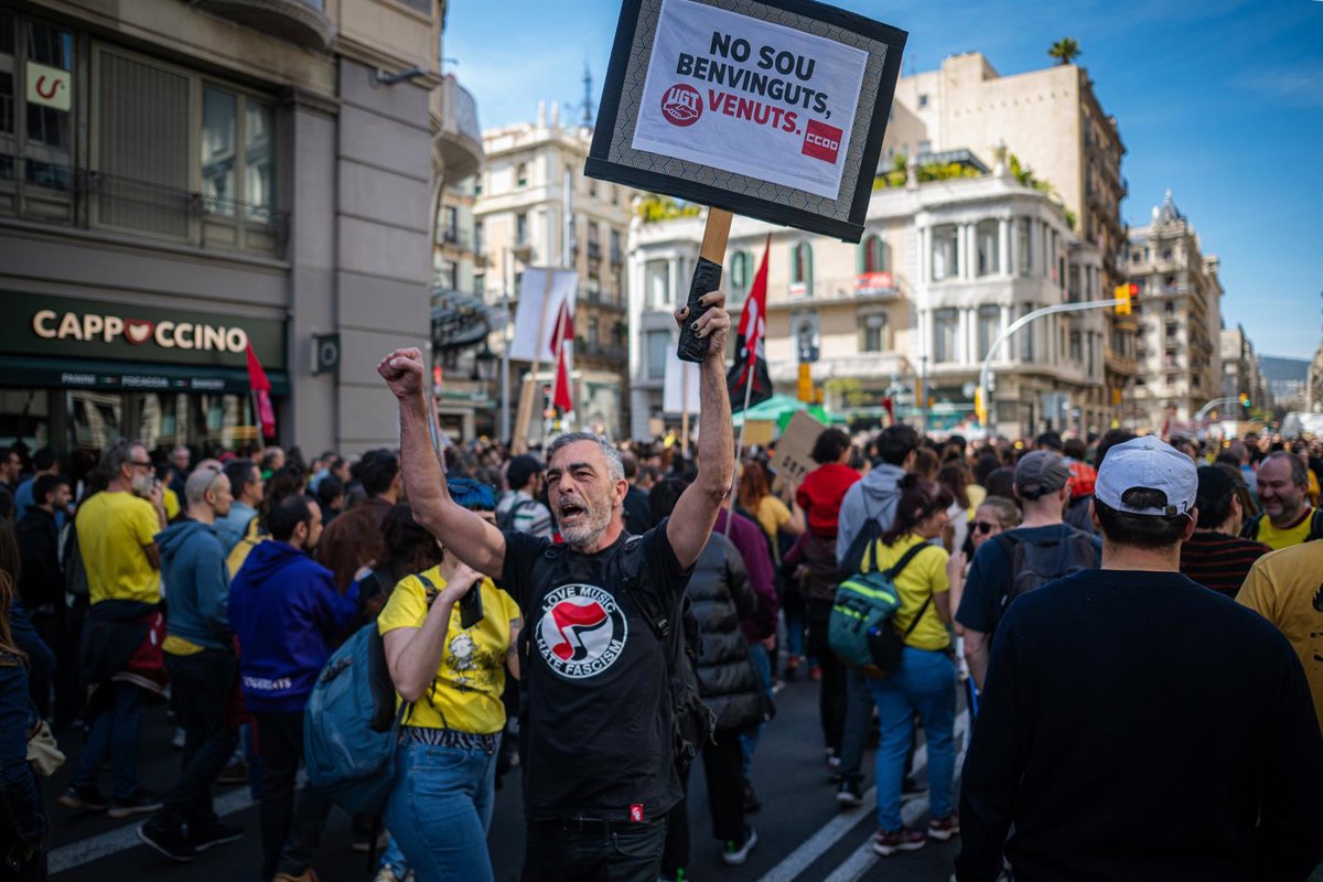 Decenas de personas durante la manifestación de docentes del 16 de marzo de 2026 en Barcelona - Lorena Sopêna - Europa Press