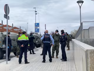 Los mismos efectivos han desinfectado los exteriores de la comisaría de Policía Local de Montgat (Barcelona) también este martes, donde además han limpiado los coches patrulla del cuerpo.