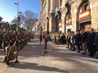 Las tropas han sido recibidas por varios 'Viva España' y 'Viva el Ejército' por el alrededor de doscientas personas que se han acercado al Palacio de Capitanía para ver el desfile, algunas con la bandera de España.