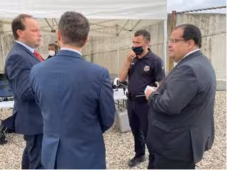 El conseller de Interior de la Generalitat, Joan Ignasi Elena, visita el centro de coordinación de emergencias del Mobile World Congress (MWC). En L'Hospitalet de Llobregat (Barcelona), el 29 de junio de 2021. - CONSELLERIA DE INTERIOR