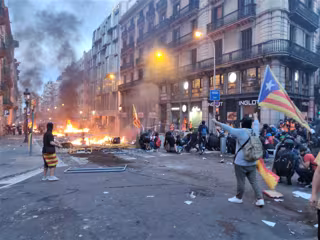 Los disturbios se extienden a la plaza Urquinaona y a otros puntos, como calles perpendiculares a Via Laietana, donde se han lanzado gases lacrimógenos contra grupos que se enfrentan a la Policía con objetos como bolas de acero y pirotecnia.