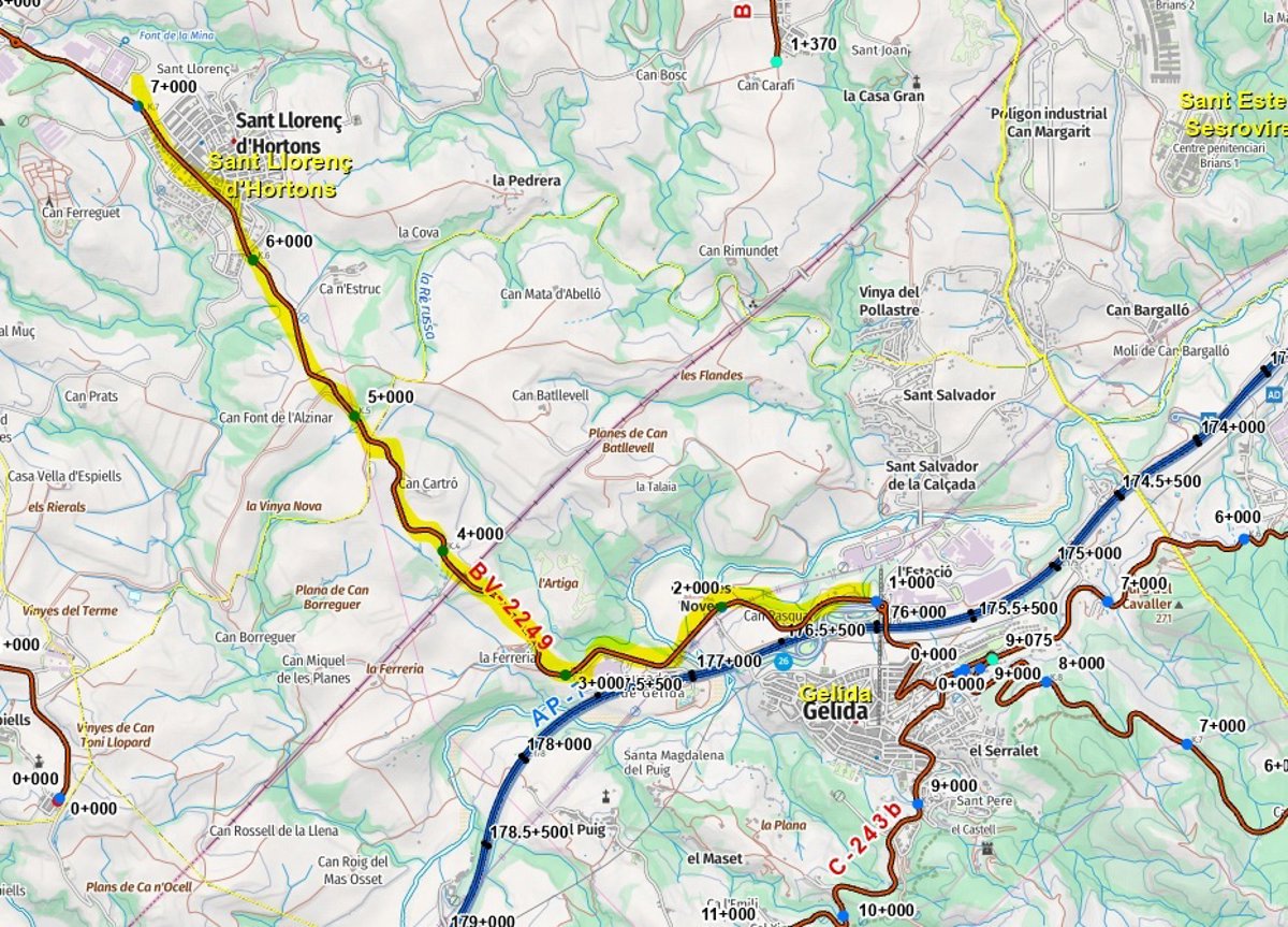 Mapa de la carretera BV-2249. - DIPUTACIÓN DE BARCELONA