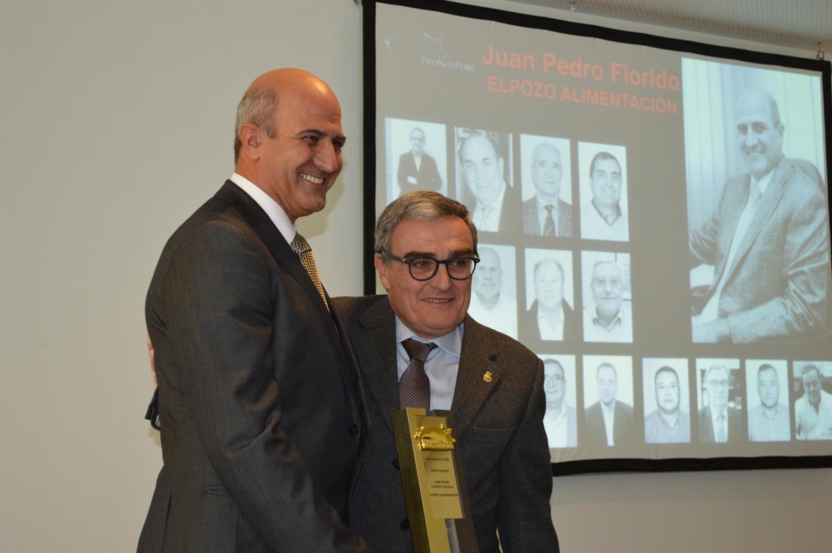 El director de operaciones de ElPozo Alimentación, Juan Pedro Florido, y el directivo de Piensos del Segre, Isidre Camí, han ganado este jueves los premios a los mejores analistas del mercado porcino Pronosporc que organiza Mercolleida, considerado como el mercado de referencia para el sector en España y en Europa.