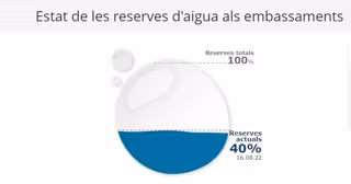 Los embalses de las cuencas internas catalanas se encuentran al 39,97% de su capacidad, cuando el año pasado en las mismas fechas se encontraban al 76,07% y ha bajado 1,2 puntos respecto a la semana pasada, según la última actualización este martes del informe del estado de los embalses de la Agncia Catalana de l'Aigua (ACA) consultado por Europa Press.