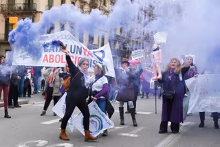 La manifestación principal del 8M en Barcelona ha empezado en la plaza Universitat este sábado por la tarde, minutos después de las 18, y desembocará en el Arc de Triomf.