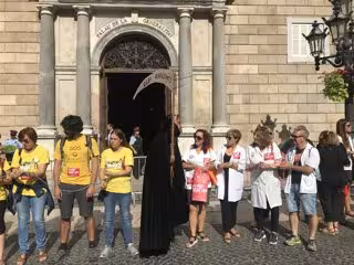 Tras la concentración han realizado una performance situada en la Barcelona de 2025 y simulando el funeral de los servicios públicos y con el 'Réquiem', de Wolfgang Amadeus Mozart primero, y la canción 'Fucking Money Man', de Rosalía, después.