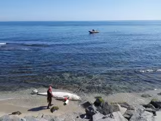 Con la colaboración de la Creu Roja de Mataró, el animal pudo ser remolcado este lunes hasta la playa de Sant Simó, donde efectivos de los Agentes Rurales le tomaron las medidas para estudiarla.