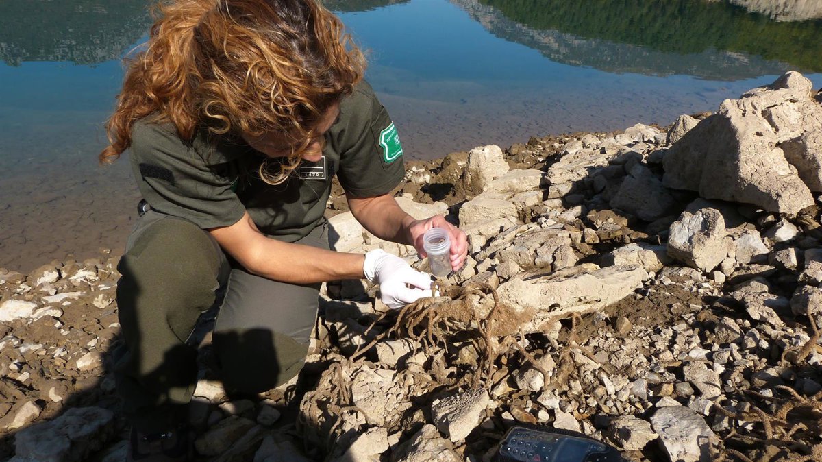 Efectivos del cuerpo de Agents Rurals están haciendo el seguimiento de una población de medio millar de esponjas de agua dulce localizadas en el embalse de Escaldes, en el término municipal de Tremp (Lleida) - , por un particular mientras hacía una prospección geológica.