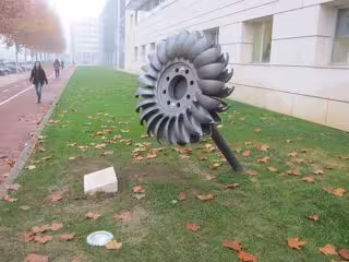 La turbina hidráulica, tipo Pelton, de primer cuarto de siglo, y procedente de una de las centrales hidroeléctricas del Pirineu leridano, forma parte del patrimonio tecnológico del Fondo Histórico de la Compañía, y proviene de la Unidad de Producción Hidráulica (UPH) Ebro Pirineo, de Endesa Generación.