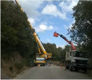 La actuación ha consistido en sustituir dos soportes por unos nuevos de hormigón, que se han pintado de color verde para integrar la infraestructura en el parque, y se ha usado una grúa de gran tonelaje para no tener que abrir nuevos accesos y preservar el entorno natural.