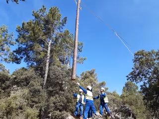 Operarios de Endesa colocando un nuevo soporte para una línea de electricidad de media tensión en la província de Tarragona. - ENDESA