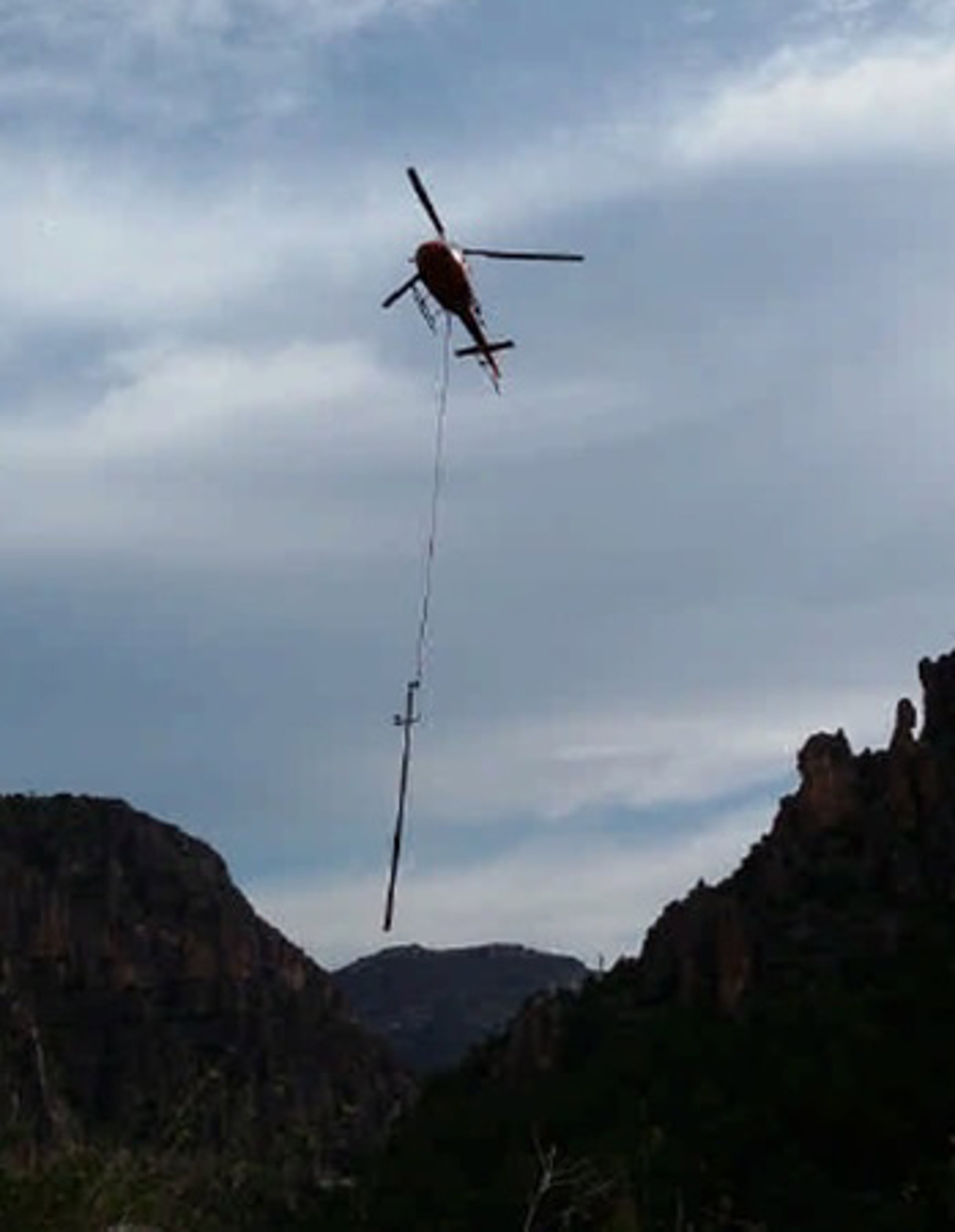 Endesa ha renovado un tramo de línea en el espacio natural del desfiladero de Camarasa, en Lleida, donde ha cambiado trece soportes de madera por unos más resistentes utilizando un helicóptero, dadas las dificultades de acceso a la zona.