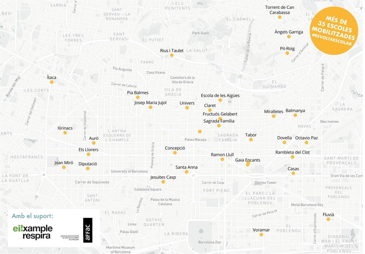 Además, el portavoz de Eixample Respira ha subrayado que, en el contexto de la pandemia de Covid-19, es necesario "más que nunca" disponer de espacio para mantener las distancias de seguridad en las entradas y salidas de las escuelas, así como garantizar la ventilación de las aulas, algo que resulta imposible, según ha dicho, con según qué condiciones de ruido y contaminación.