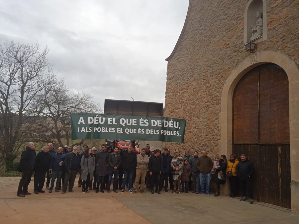 Representantes de las entidades municipalistas Associació Catalana de Municipis (ACM), Federació de Municipis de Catalunya (FMC) y Associació de Micropobles de Catalunya (AMC) y del sindicato Unió de Pagesos se han concentrado este miércoles en Castellfollit del Boix (Barcelona) para protestar contra las inmatriculaciones de la Iglesia y pedir "la devolución de todos los bienes a los pueblos".