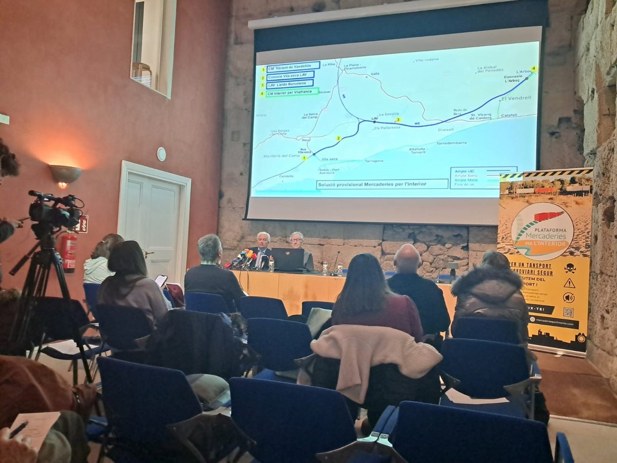 La Plataforma Mercaderies per l'Interior ha presentado este miércoles una alternativa a la plataforma para trenes de mercancías en la zona de Tarragona: pasa por el interior y evita todos los núcleos poblados pasando paralelo a infraestructuras ya existentes.