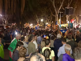 "Os pedimos que les acompañemos. No les dejaremos solos", ha dicho Sànchez, que ha precisado que quienes quieran pueden acampar ante el TSJC, pasar la noche y desplazarse por la mañana a la Ciudad de la Justicia, lo que ha sido contestado por los asistentes con gritos de 'Esta noche la pasamos aquí'.