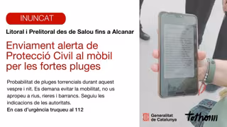 Esta alerta se suma a la que ya se ha enviado este domingo por la tarde a los móviles de la comarca del Montsià.