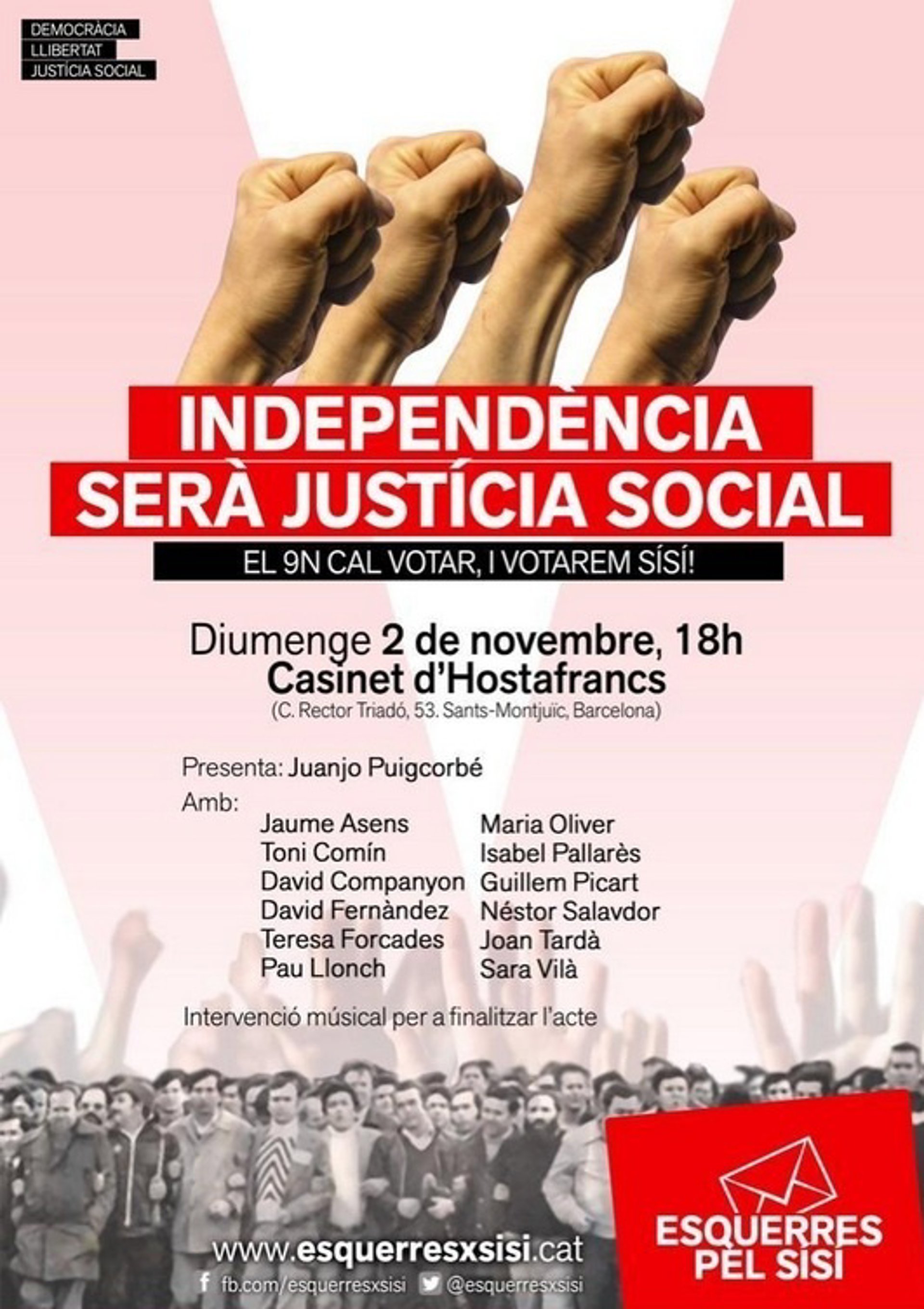 El evento lo organiza el colectivo 'Esquerres Sí pel Sí Sí', bajo el título 'Independencia será justicia social', y también está haciendo actos en otras localidades en el territorio catalán en defensa de las políticas sociales y el Estado propio.