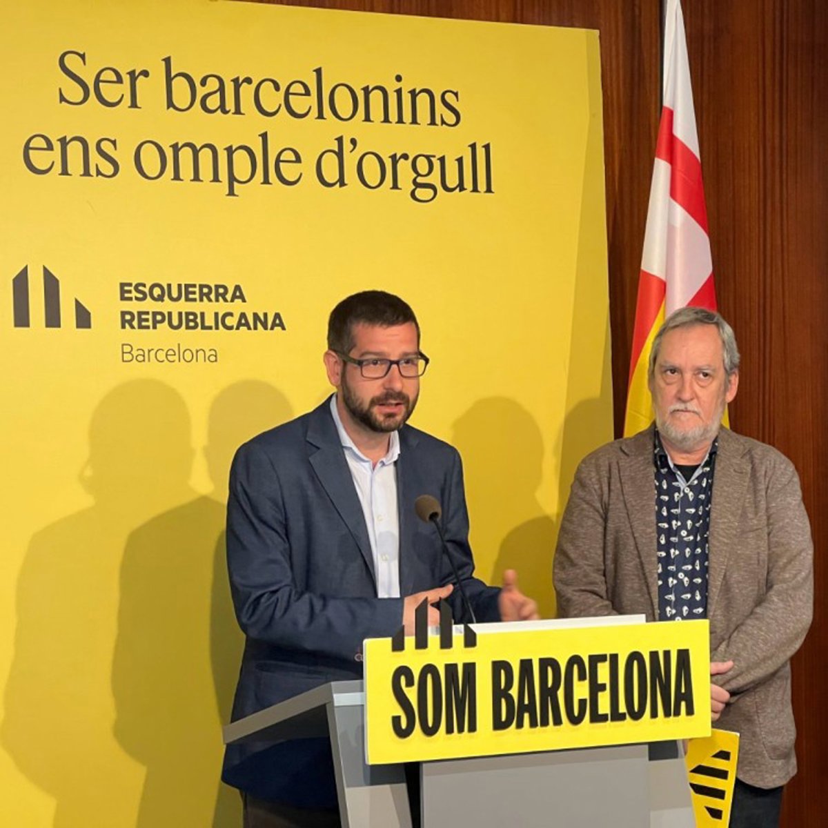 El portavoz de ERC en Barcelona, Jordi Castellana, y el portavoz adjunto, Jordi Coronas, en rueda de prensa. - ERC BARCELONA
