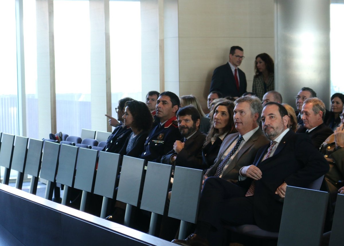 El acto también ha contado con la presencia del Delegado de la Generalitat en Barcelona, Fernando Brea, la directora general de Administración de Seguridad, Maite Casado; el director general de la Policía, Albert Batlle, y el comisario jefe del cuerpo de Mossos d'Esquadra, Josep Lluís Trapero, entre otras personalidades.