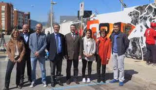 Un grupo de estudiantes de Escuelas de Arte de Catalunya, ganadores del concurso 'Pintar Murs TV3', pintan desde este jueves el muro perimetral de las instalaciones de la Corporació Catalana de Mitjans Audiovisuals (CCMA).