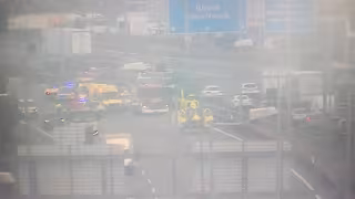Un helicóptero medicalizado aterriza en la AP-7 en Barberà del Vallès (Barcelona) por un accidente múltiple. - SERVEI CATALÀ DE TRÀNSIT (SCT)