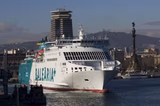 El aviso del incidente se ha recibido a las 19.30 horas, apenas una antes del horario previsto para que el barco --el buque Martín i Soler-- llegara a la capital catalana tras partir de Ibiza a las 11.30 de la mañana.