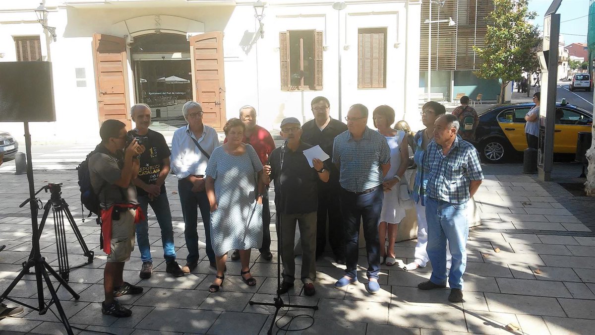 Frederic Prieto, que fue alcalde de Cornellà por el PSUC; Montserrat Gibert, exalcaldesa de Sant Boi por el PSC, y Jaume Monné, exalcalde de Olesa por el PSC, han presentado el manifiesto este martes durante un acto en la plaza de la Vila de El Prat.