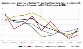 Exportaciones de productos industriales de Catalunya entre el segundo trimestre de 2022 y el de 2024 - IDESCAT
