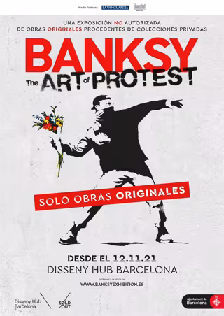 Cartel de la exposición de Banksy en el Disseny Hub de Barcelona - SOLD OUT/DISSENY HUB