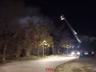 Sobre las 1.46 horas han dado por extinguido el fuego tras trabajar desde el patio del complejo y desde la autoescalera, para abordar la cubierta --que acabó colapsando--, ya que las llamas habían afectado a unas bigas de madera y a unos bidones con hasta 200 litros de residuos.