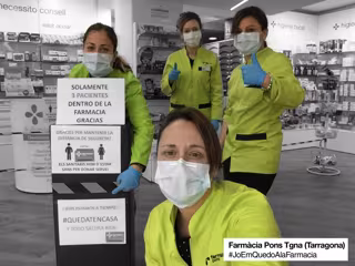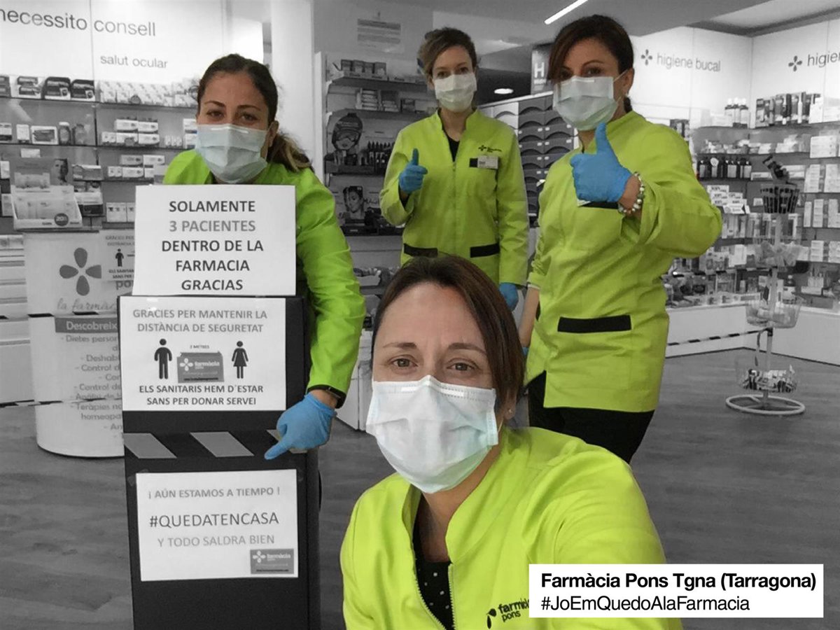 Farmacéuticas de la Farmcia Pons de Tarragona, uno de los establecimientos de Ecoceutics de la campaña #yomequedoenlafarmacia contra el coronavirus - ECOCEUTICS