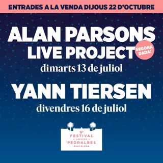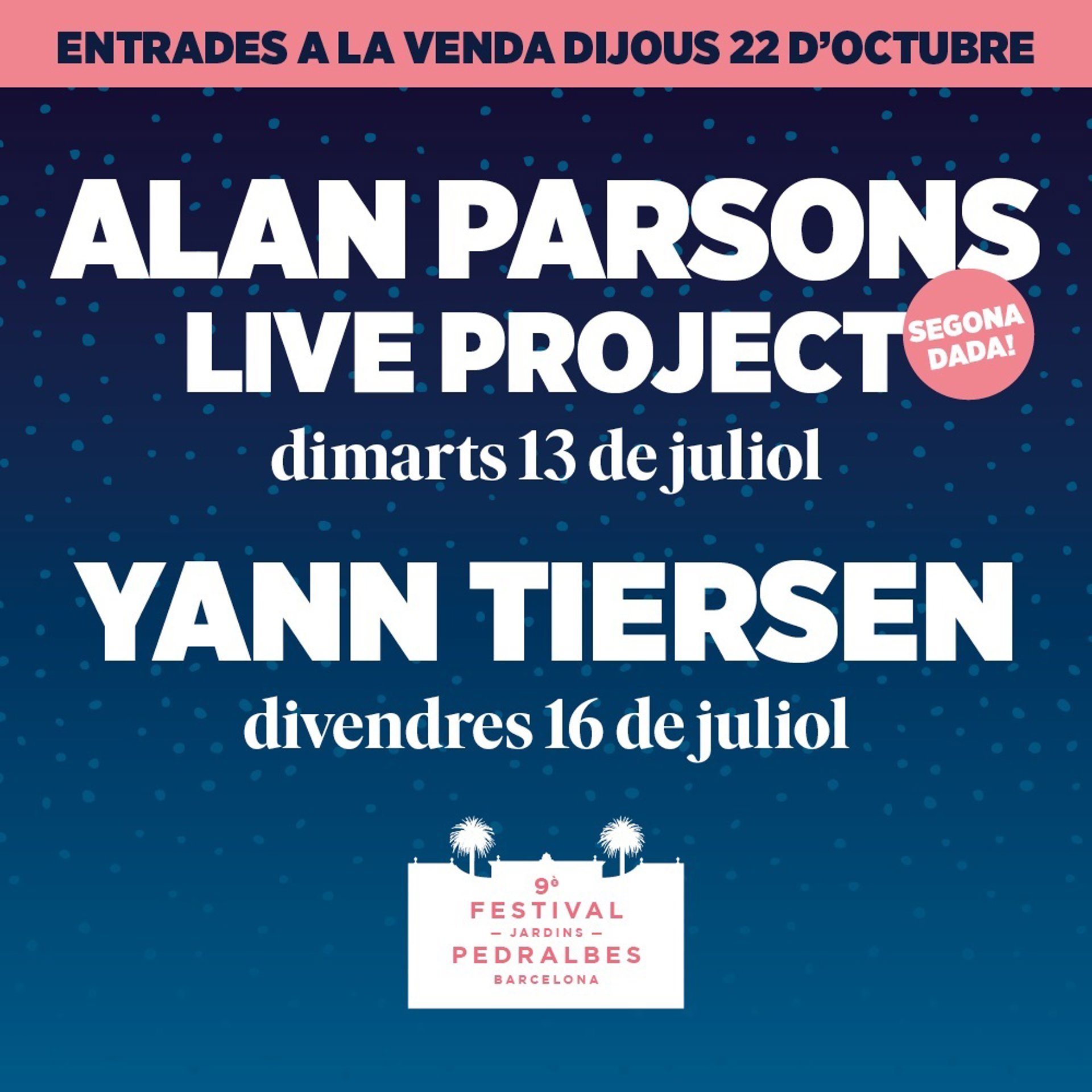 Cartel de conciertos de Alan Parsons Live Project y Yann Tiersen - FESTIVAL JARDINS DE PEDRALBES
