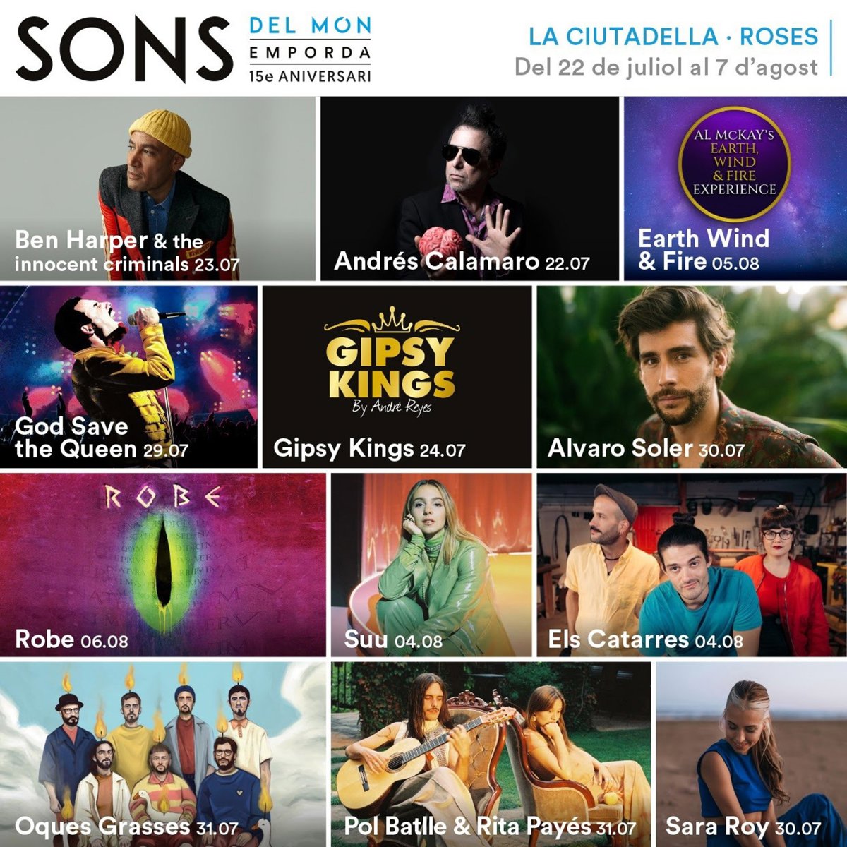 El Festival Sons del Món, que se celebrará del 22 de julio al 7 de agosto en Roses (Girona), ha incorporado a su cartel a Andrés Calamaro, Gipsy Kings, God Save the Queen y Rita Payés, ha informado este lunes en un comunicado.