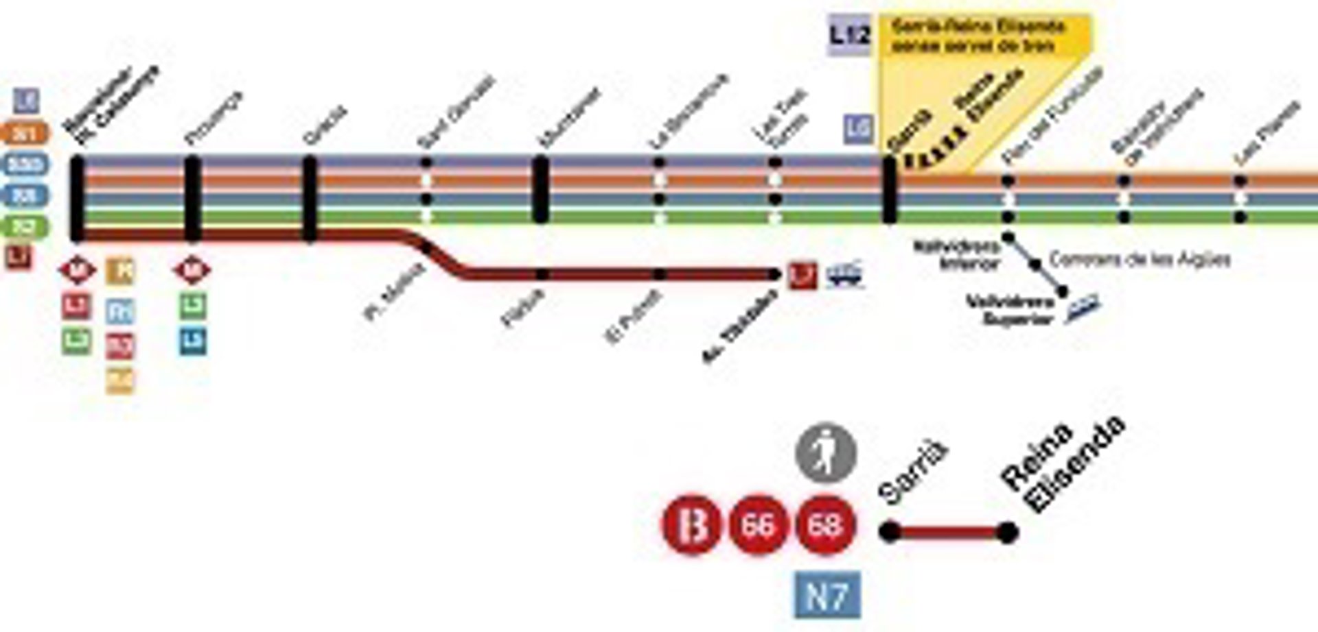 La L12, que une las estaciones de Sarrià y Reina Elisenda, quedará interrumpida los fines de semana del 1 y 2 de abril, del 8 y 9, y el sábado 22.